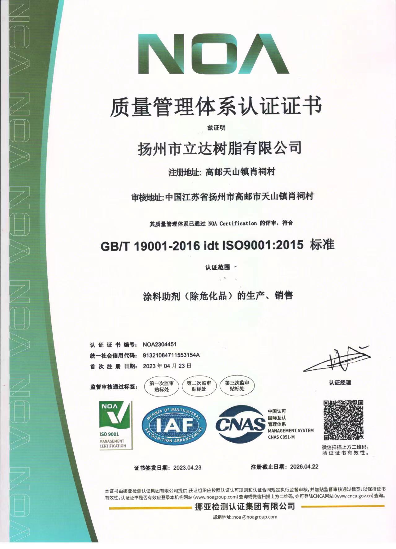 ISO9001質(zhì)量體系證書